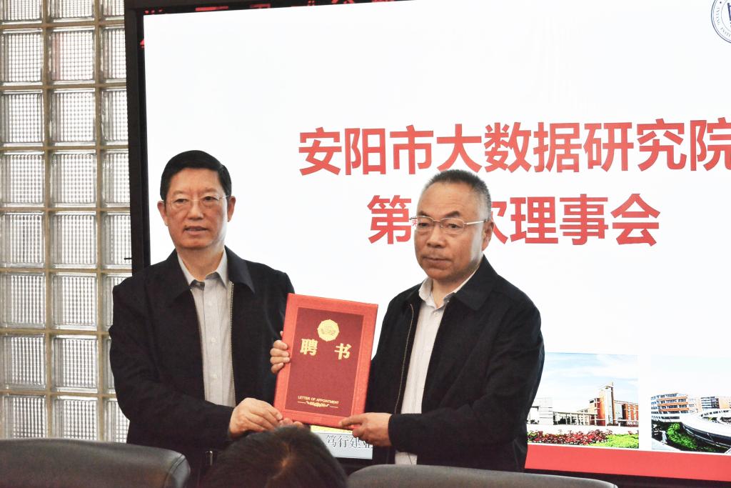 4月28日上午9时,安阳市大数据研究院第一届理事会第一次会议在公司行政楼2楼会议室召开。董事长景国勋、副董事长万鹏杰、安阳市政务服务与大数据管理局局长王福生、副局长靳水成等领导出席会议,安阳市高新区管委会等18家理事单位代表、公司beat365中文官网负责人及教师代表参加会议。万鹏杰主持会议。