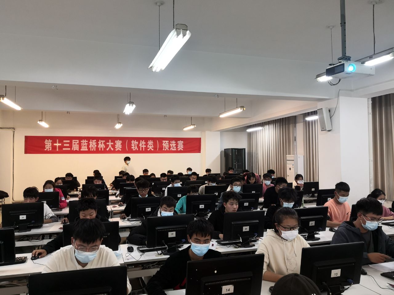15:30分,参赛选手在监考人员的帮助下有序签到,宣讲比赛规则制度,并发布考试网址。16:00比赛正式开始,比赛过程中,每位参赛者都能严格遵守考场秩序,沉着思考,对考题进行独立解答。当参赛者对设备提出一些问题时,工作人员及时进行解答,以使比赛顺利进行。这次选拔赛的顺利进行,离不开全院员工的积极参与,更离不开老师们及活动工作人员的辛勤付出、热心贡献。这次比赛,在一定程度上提高了同学们对专业知识的熟悉,并对“蓝桥杯”赛事有了一定的了解,给2021级新生小试牛刀的良好机会。