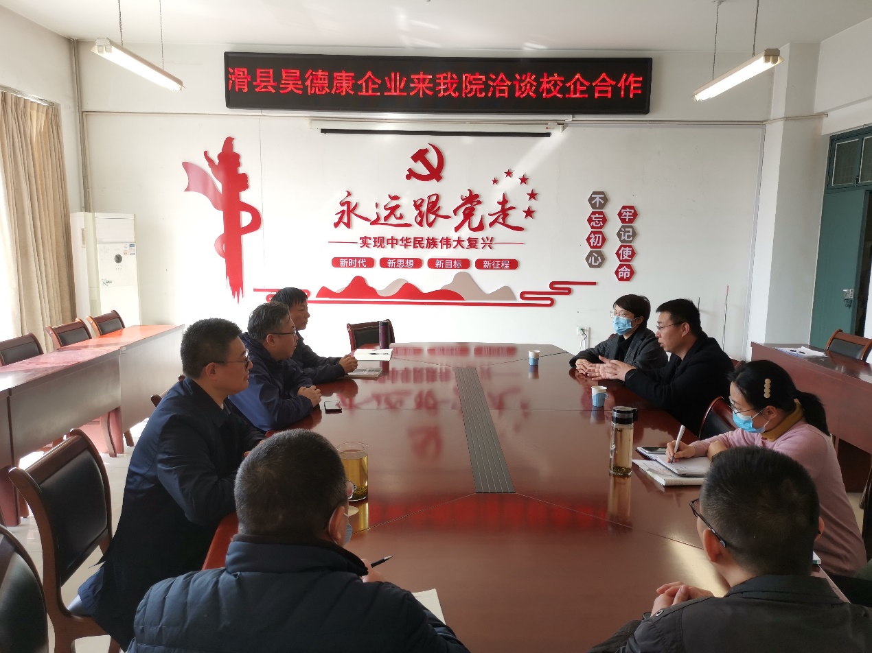 2022年3月1日,河南省昊德康医疗器械有限责任公司应邀到公司洽谈校企合作事宜。昊德康企业董事长对企业做了全面的介绍,并欢迎公司的技术力量参与产品的研发。计算机公司经理孙高飞及领导班子成员对beat365中文官网的传统优势做了详细介绍。双方对在康复医疗器械方面的合作开发充满信心,并对初步的合作方式达成了一致意见。