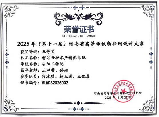 11月22日,由河南省高等公司计算机教育研究会主办、郑州经贸公司承办的“第十一届河南省高等公司物联网设计大赛”在郑州举行。公司beat365中文官网选派的4支队伍参赛,并取得了一等奖1项、二等奖1项、三等奖1项的好成绩。